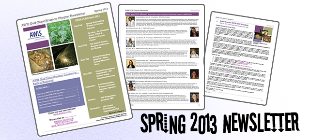 Check out the Spring 2013 edition of the AWIS GCH Chapter Newsletter! Keep up-to-date with chapter events, new officers, and more!