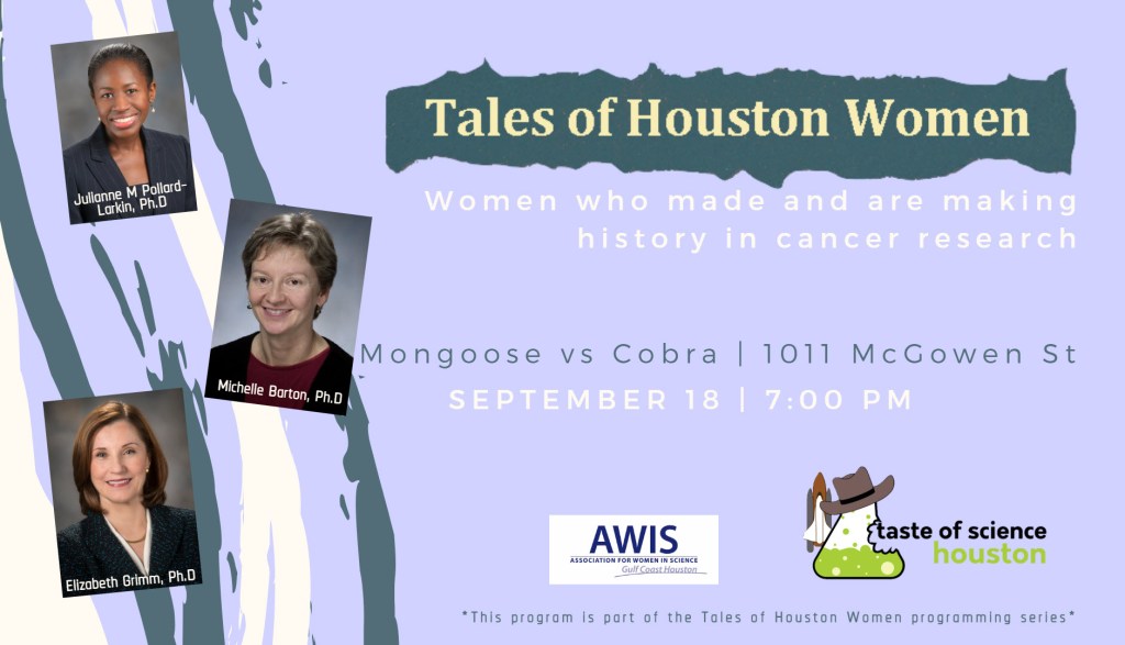 As part of our month-long collaboration with the Houston History Alliance – HHA, taste of science Houston, and AWIS Gulf Coast Houston Chapter will be honoring the scientific achievements of Houston Women, past & present.