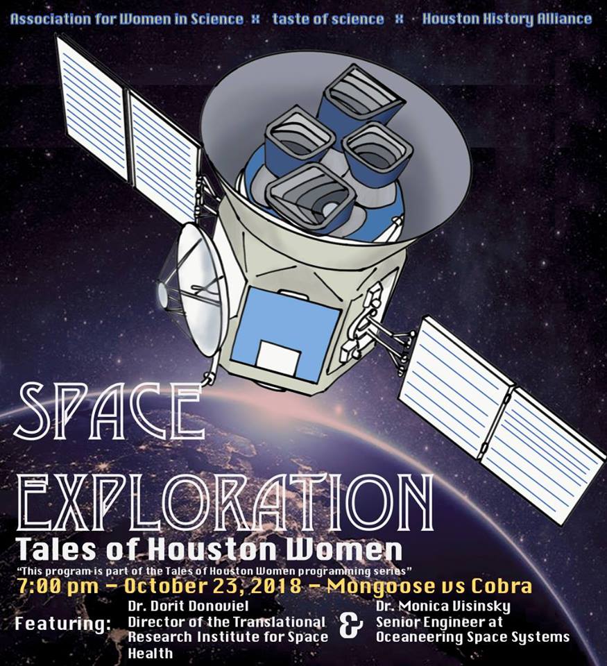 As part of our monthlong collaboration with the Houston History Alliance’s Tales of Houston Women programming series and taste of science Houston, we present a discussion with 2 Houston women who are innovators in the fields of space science and engineering, Dr. Dorit Donoviel, Director of the Translational Institute for Space Health at Baylor College of Medicine and Dr. Monica Visinsky, Senior Engineer at Oceaneering Space Systems. Doors at 6:30 pm, presentation starts promptly at 7 pm. See you there!