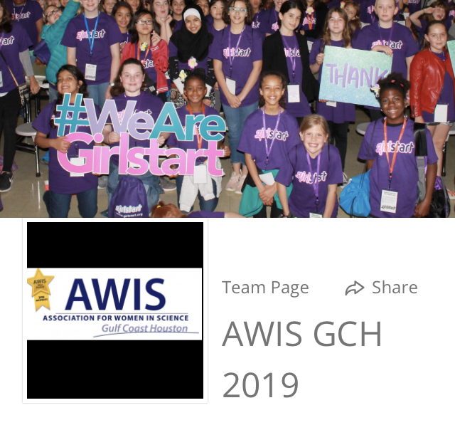 AWIS GCH is partnering with Girlstart to raise funds for students attending the conference, with AWIS GCH matching up to $350 in scholarships (the cost of sponsoring 10 students). Please consider donating through our team’s fundraising page: