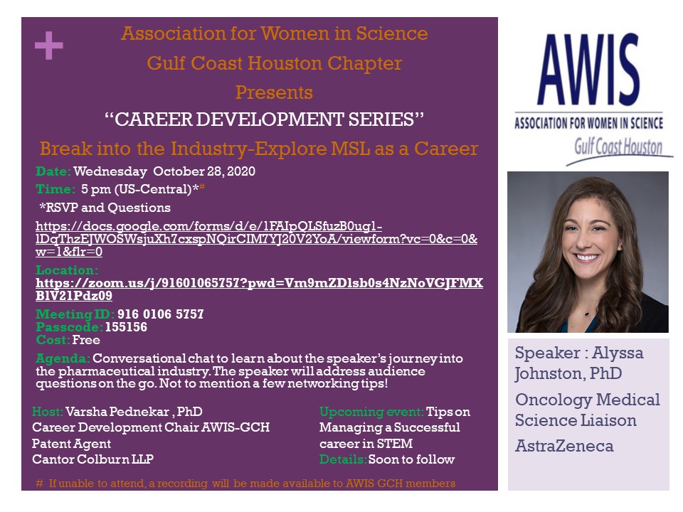 Speaker: Alyssa Johnston, Ph D. Dr Johnston is into Medical Affairs currently working with a leading pharma company.