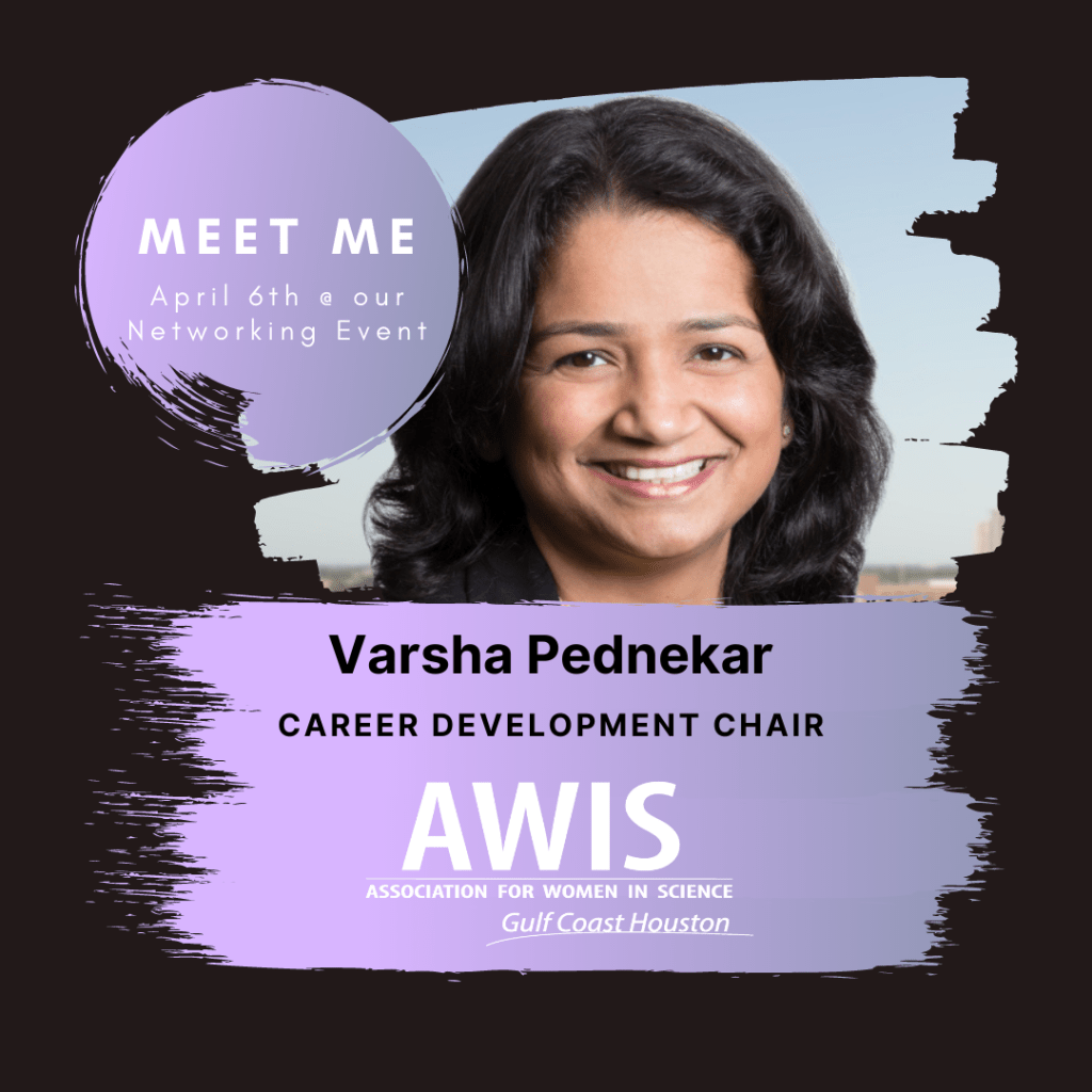 Please join us on April 6th for a networking happy hour and meet AWIS GCH Career Development Chair: Varsha Pednekar