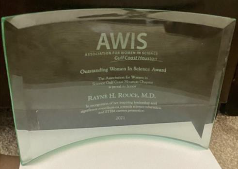A Brilliant Scientist, an Empathetic Physician, a Beloved Colleague, an Outstanding Mentor, a Wonderful Human Being, and a Strong Voice of Women Empowerment and Racial Equity: These are just a few words to describe Association for Women in Science Gulf Coast Houston (AWIS GCH) Chapter’s OWIS 2021 Spring award recipient, Dr. Rayne H Rouce.